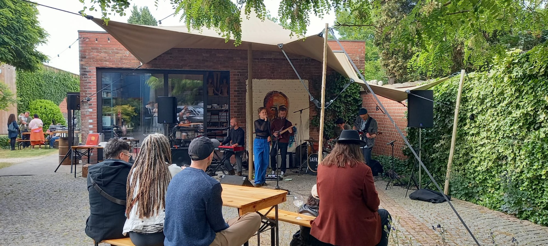 In de meimaand richten wij, of onze huurders, een opendeur dag in. Dat omvat meestal een tentoonstelling van kunstwerken of -werkjes, animatie, foodtruck, en dies meer. U als huurder zorgt dat uw klanten de weg vinden naar de open deuren van alle deelnemende collega huurders. Leuker dan je denkt, en mogelijks nuttig om je te laten kennen. In 2025 was dat op zondag 18 mei. Thema: natje, droogje, pretje, koopje! Verscheidene van onze huurders hebben al goesting voor 2026! Er vielen o.a. juweeltjes, lingerie, kledij, keramiek, gestoffeerde meubeltjes en lederwaren te bewonderen; een marktje met wenskaarten, speelgoed, plantjes, en wat al niet meer. Hm, erg vrouwelijk uitgevallen dit jaar! Desert bar, Stroom bier, wijnproeverij, cocktailbar - dorst kon niemand hebben. Klant, vakman, nieuwsgierige, sportieveling, buurtbewoner, potentiële huurder : iedereen welkom.
